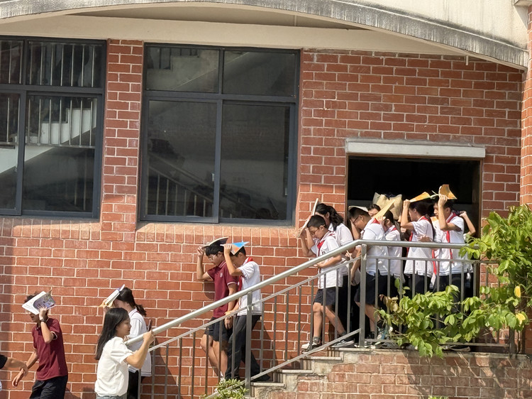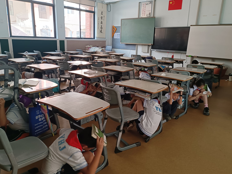 接著,義教部舉行了預(yù)防地震應(yīng)急疏散演練。同學(xué)們聽到第一聲警報(bào)后,立即用課本或書包護(hù)頭躲在桌子下,然后頂上書包或課本依次從安全通道撤離到指定的安全地點(diǎn),整個(gè)逃生過程用時(shí)不到2分鐘,全體同學(xué)安全撤離。最后,袁利平校長對此次活動進(jìn)行總結(jié),對全體師生在演練中的配合默契、疏散動作迅速有序予以充分肯定。