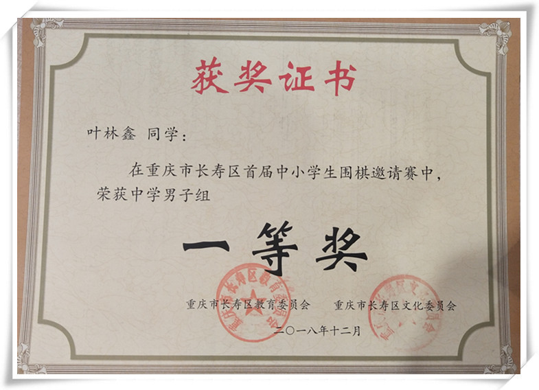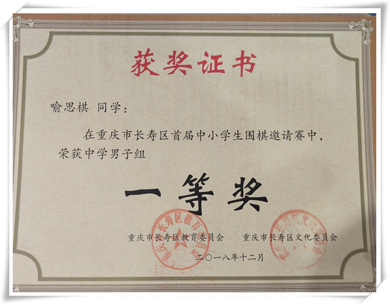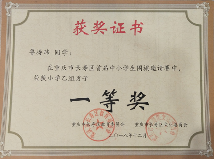 6、2018年12月15日,長壽區(qū)圍棋比賽魯濤瑋等同學(xué)榮獲一等獎(jiǎng)、二等獎(jiǎng)