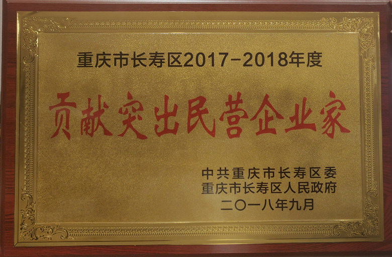 1、2018年9月19日,宋遠(yuǎn)標(biāo)董事長榮獲長壽區(qū)“貢獻(xiàn)突出民營企業(yè)家”稱號(hào)
