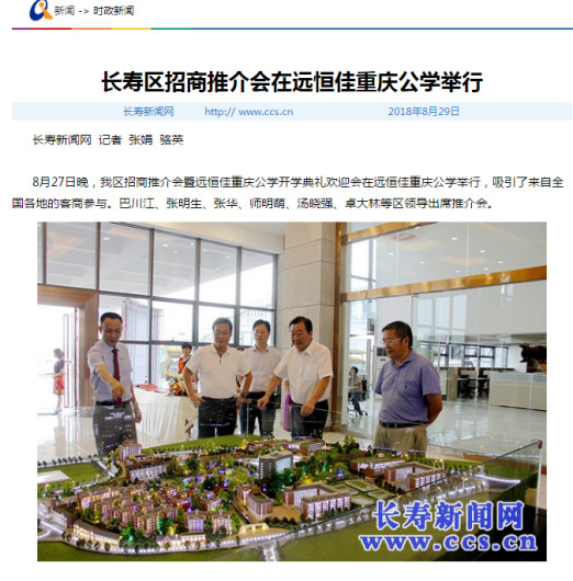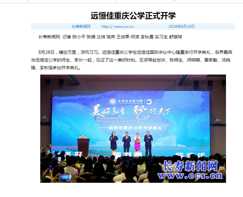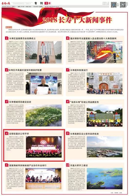 3、2019年1月9日,長壽日?qǐng)?bào):遠(yuǎn)恒佳重慶公學(xué)開學(xué)并列長壽區(qū)十大新聞事件