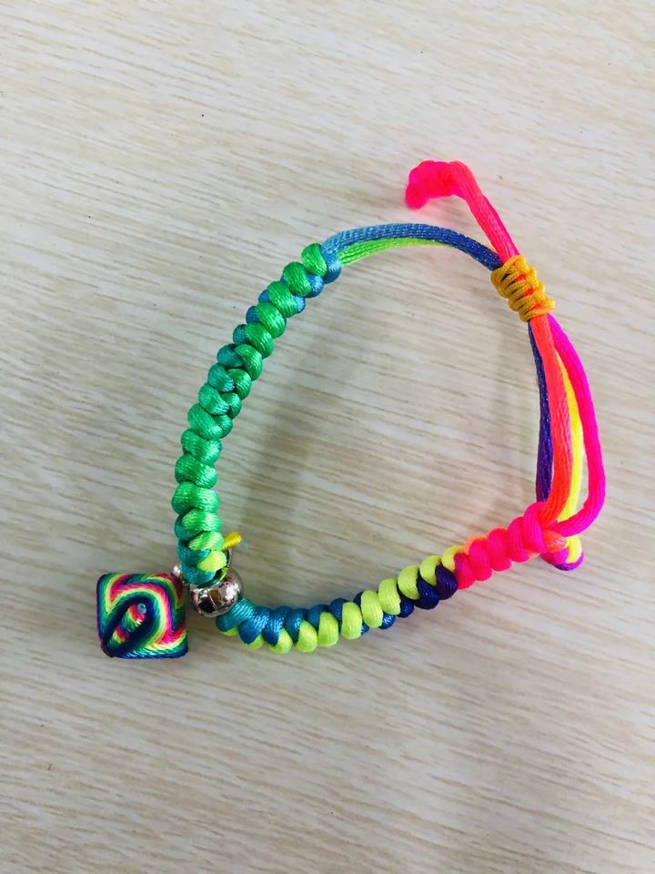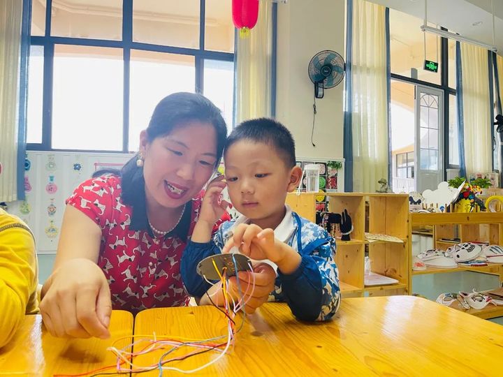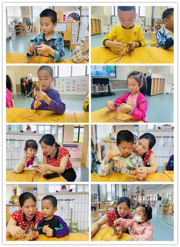 幼兒園家長(zhǎng)助教進(jìn)課堂,許淵博小朋友的媽媽帶著孩子們一起做五彩繩,寓意著祛除災(zāi)害,迎福納吉。