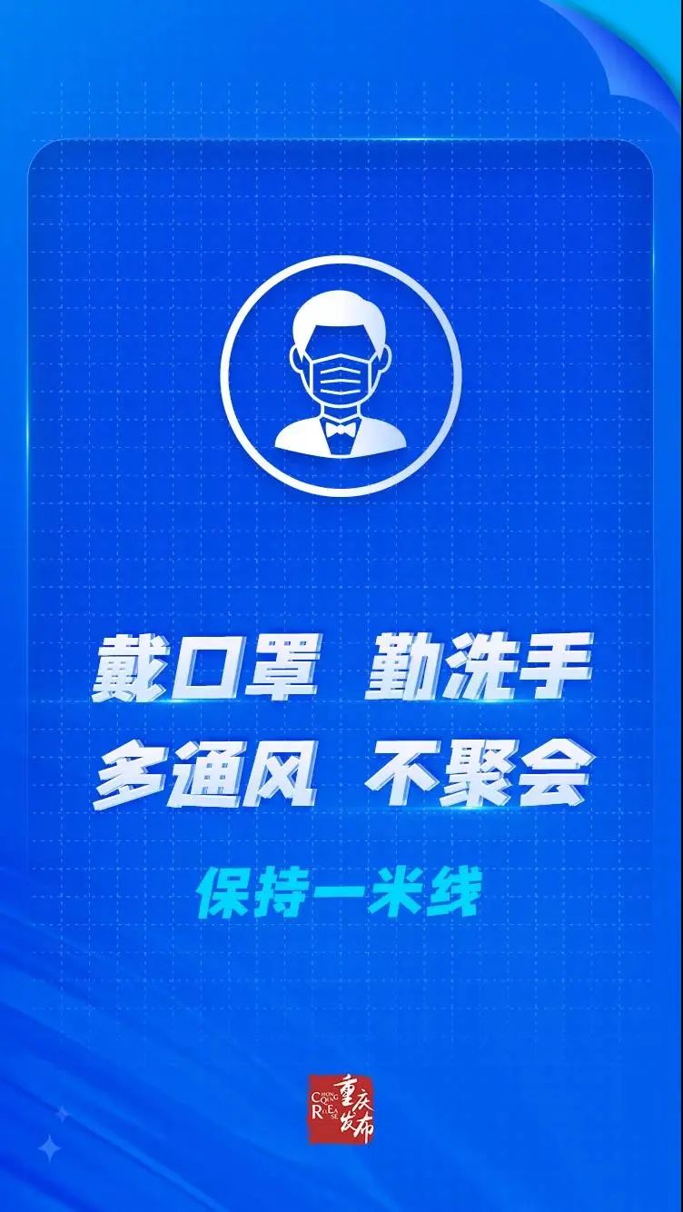 關(guān)注疫情動(dòng)態(tài),及時(shí)了解中高風(fēng)險(xiǎn)地區(qū)信息。如非必要,不要前往中高風(fēng)險(xiǎn)地區(qū);如非必要,不要出境。中高風(fēng)險(xiǎn)地區(qū)及境外返渝人員,應(yīng)及時(shí)主動(dòng)向單位、所在地社區(qū)(村)報(bào)告,并配合落實(shí)相關(guān)防控措施。