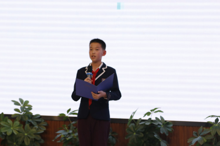 重慶市長壽區(qū)最年輕的圍棋五段選手,優(yōu)秀少先隊員代表魯濤瑋同學發(fā)言。