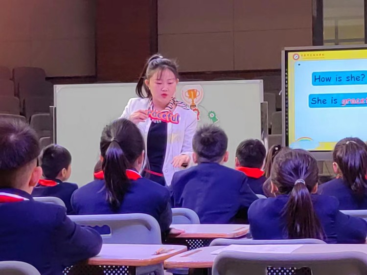 第一節(jié),鄭燕老師執(zhí)教了《新魔法英語》《1B Unit1 She is helpful.》。 鄭老師針對三年級學生的年齡特點,將課堂教學模式確定為“任務與活動相結合”的整體教學模式,將語言學習和多種能力的培養(yǎng)滲透到課堂活動和教學任務中,努力為孩子們提供一個不斷感知、不斷探索、不斷提高的成長空間。孩子們以極大的熱情和興趣參與到整個教學活動中,在活潑愉快的教學氛圍中感到了學習英語的快樂和獲取知識的滿足。