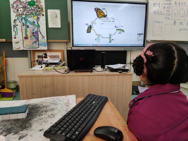 在美術(shù)課堂上,老師和學(xué)生一起頭腦風(fēng)暴。