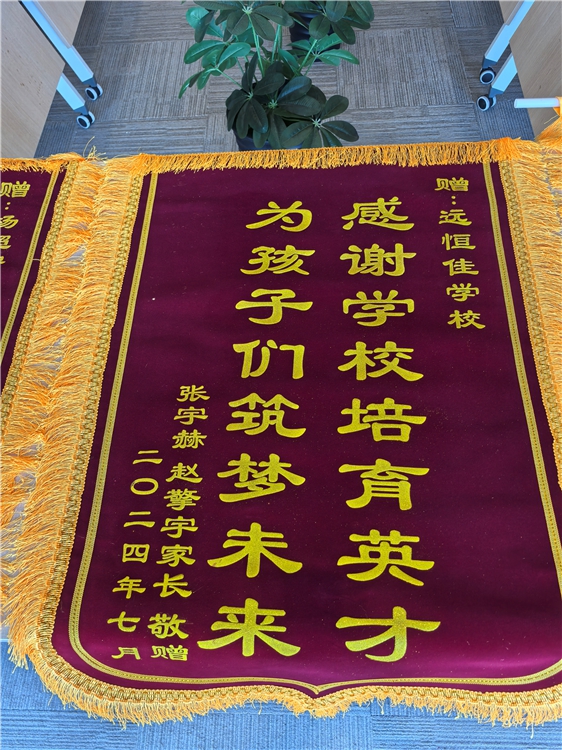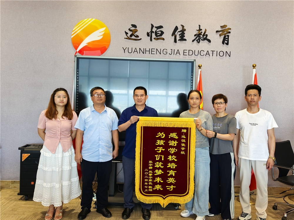 7月24日,高三(3)班張宇赫的父母與高三(4)班趙擎宇的母親,滿懷感激之情,不辭辛勞地從河南新鄉(xiāng)市遠(yuǎn)道而來,將三面錦旗親手贈(zèng)予遠(yuǎn)恒佳學(xué)校。此舉不僅是對學(xué)校及老師們辛勤付出的高度認(rèn)可,更是對孩子們在此所獲得的一切成長與進(jìn)步的深情致謝。