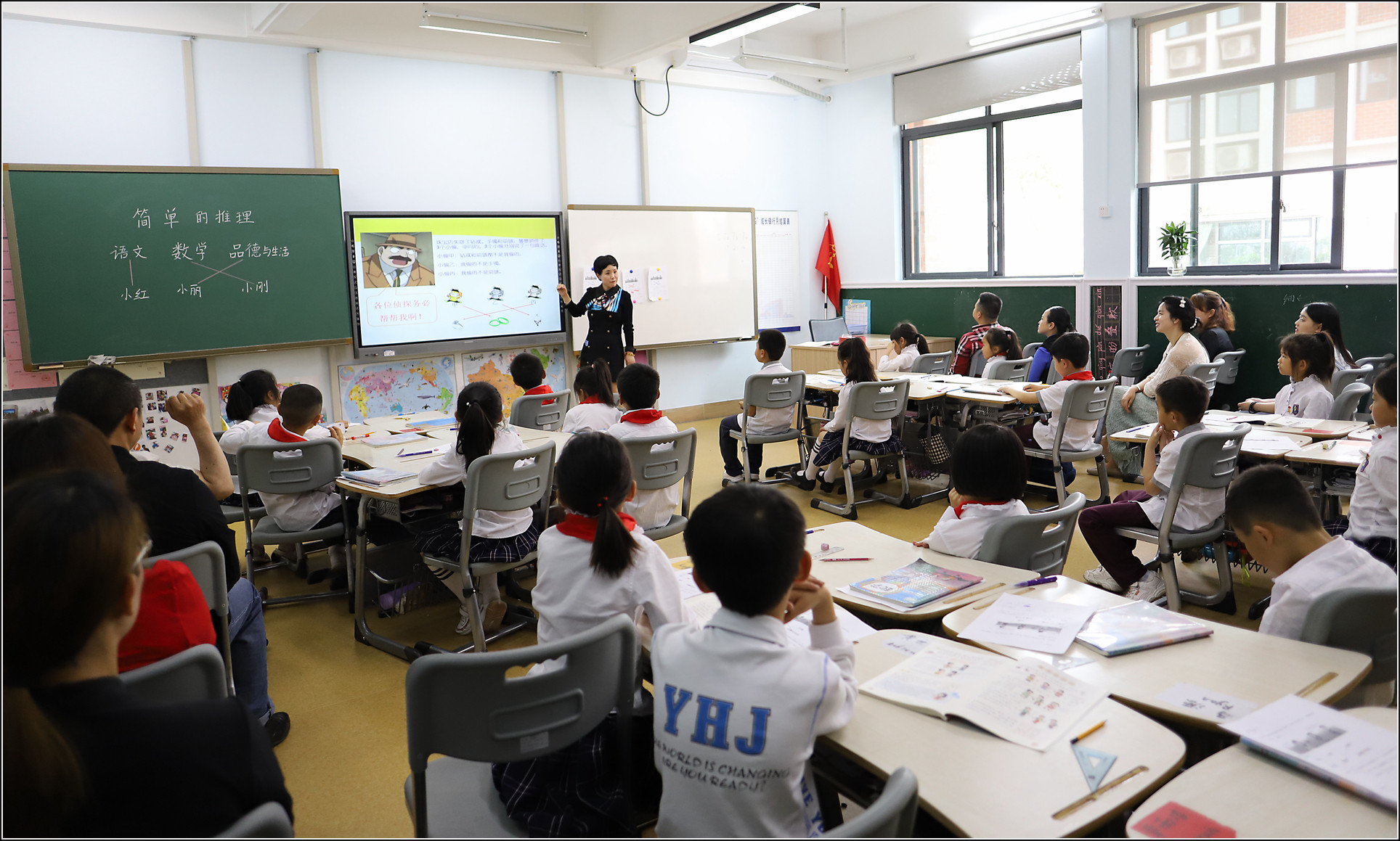欣賞完了視頻,再走進(jìn)課堂去瞧瞧?!拔摇钡暮⒆邮窃鯓訉W(xué)習(xí)的?學(xué)得怎么樣?他們是如何美麗綻放的?家長(zhǎng)們帶著強(qiáng)烈的好奇心走進(jìn)了各班教室。語(yǔ)文課上,孩子們文思泉涌,即興作文讓人嘖嘖稱(chēng)贊;共讀《流浪地球》,深度剖析,侃侃而談,讓家長(zhǎng)們都有了馬上去看原著的沖動(dòng);數(shù)學(xué)課上,你可以看到規(guī)律之美、思辯之美,以及華羅庚、狄利克雷等大數(shù)學(xué)家的影子。CCIC課堂模式帶給學(xué)生的不僅是林立的小手,更有小組合作下的協(xié)作能力、表達(dá)能力、高階思維能力以及高效率解決問(wèn)題的能力。一位家長(zhǎng)不由得贊嘆:“這樣的課堂,是在培養(yǎng)未來(lái)的大文豪和大科學(xué)家呀!”