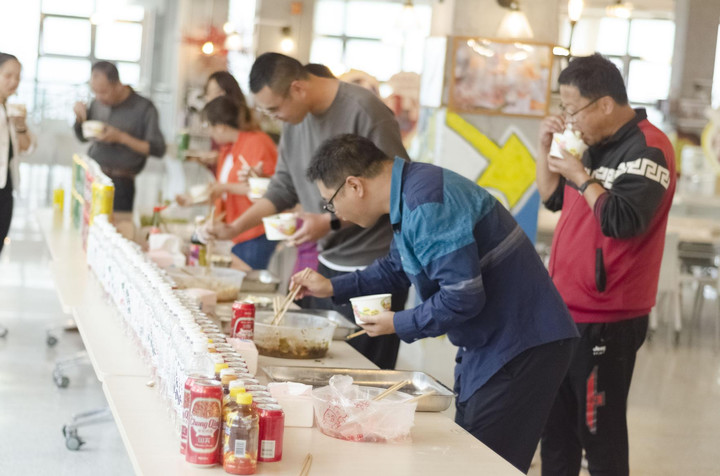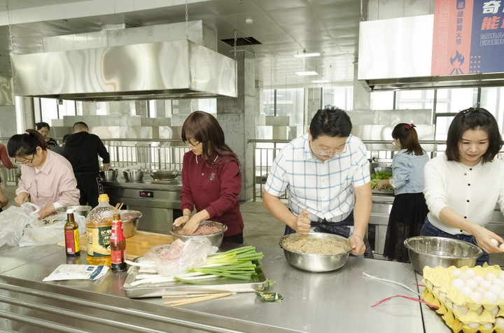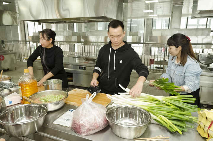 從食材的準(zhǔn)備、清洗、切、調(diào)配,從和面、揉面、搟皮兒、包餃子、煮餃子大家全程一起合作完成,其樂融融。