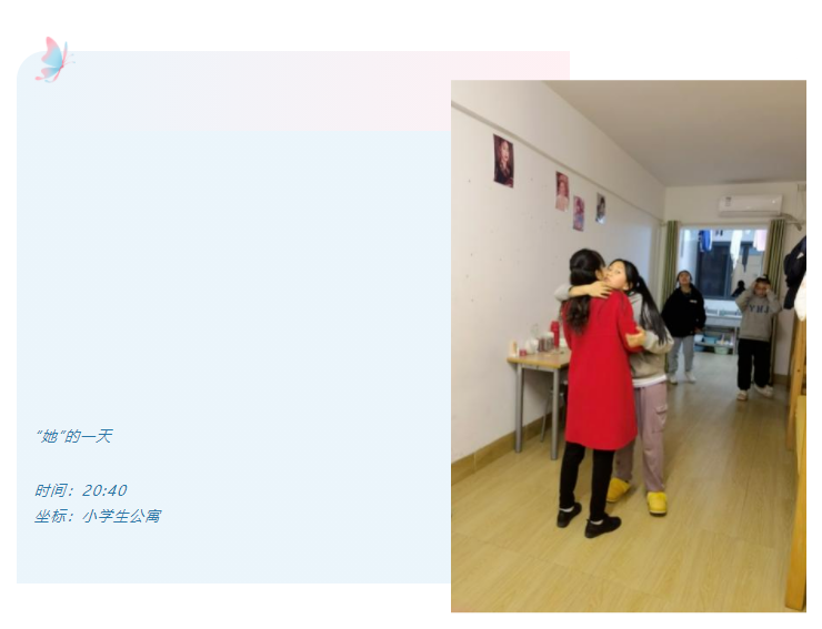 21:30班主任例行查寢,看那對(duì)思念媽媽在外工作而長(zhǎng)久不能相見的娃實(shí)在落寞,她決定今晚把倆娃帶回宿舍,好好心疼下。把寶貝樂得呀,相信今晚在老師的懷里,一定能睡得很香吧。