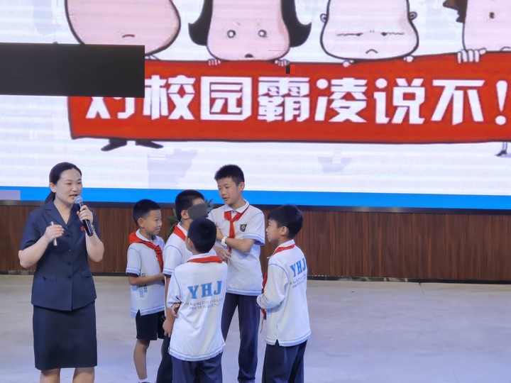 這節(jié)課形式多樣,從知識講解到情景劇表演,從視頻有獎競猜到誦讀守法三字歌?;又忻恳粋€學生都懂得了校園欺凌是一種違法行為。孩子們專注篤定的眼神,是對這節(jié)課最好的回應。
