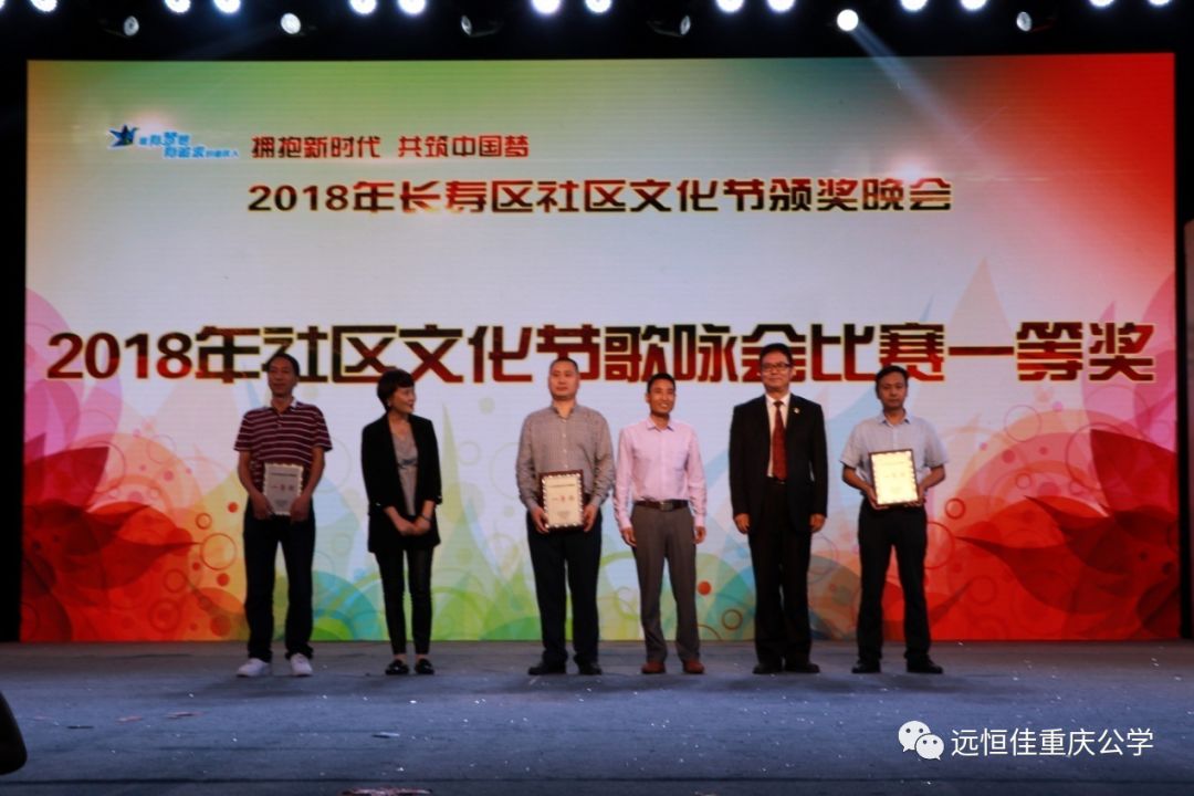 遠(yuǎn)恒佳重慶公學(xué)總校長王振權(quán)博士和區(qū)委領(lǐng)導(dǎo)一起觀看演出,并為獲得歌詠會比賽一等獎的單位頒獎。