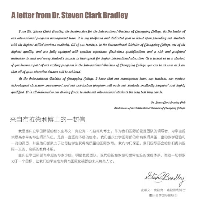 來(lái)自布拉德利校長(zhǎng)的一封信