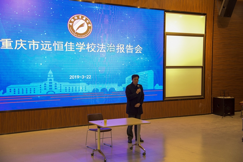 2019年3月22日,長(zhǎng)壽區(qū)關(guān)工委常務(wù)副主任譚連興、長(zhǎng)壽區(qū)關(guān)工委常務(wù)副主任張志國(guó)、長(zhǎng)壽區(qū)關(guān)工委辦公室主任劉小蘭、長(zhǎng)壽區(qū)教委關(guān)工委副主任羅家興、長(zhǎng)壽區(qū)教委關(guān)工委“五老”報(bào)告團(tuán)成員雷作純、長(zhǎng)壽區(qū)教委關(guān)工委秘書(shū)長(zhǎng)劉忠、長(zhǎng)壽區(qū)關(guān)工委“五老”報(bào)告團(tuán)成員王志祥一行送課到重慶市遠(yuǎn)恒佳學(xué)校,一場(chǎng)法治報(bào)告會(huì)將“法治教育宣傳月”活動(dòng)推向新高度。