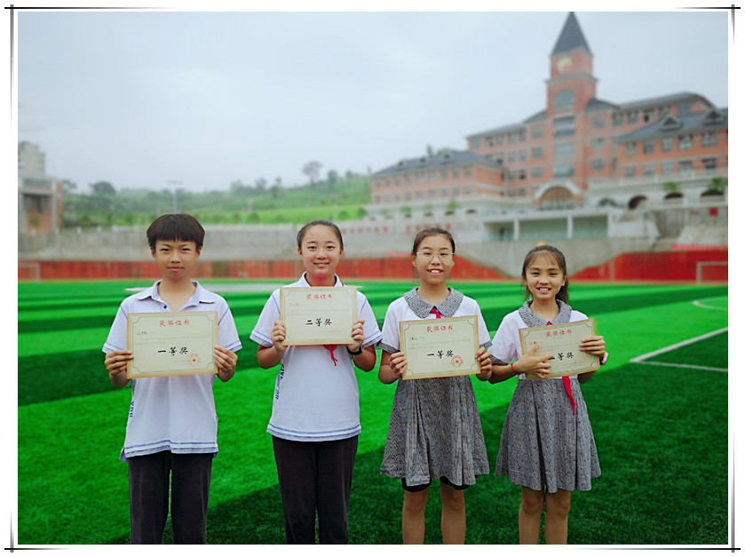 七(3)班何子棋、黃璐瑤、王汝月、何思源等4名同學(xué),在2019年全國新時(shí)代好少年主題教育讀書活動(dòng)“我為祖國點(diǎn)贊”朗誦比賽中,榮獲長壽區(qū)團(tuán)體三等獎(jiǎng)。