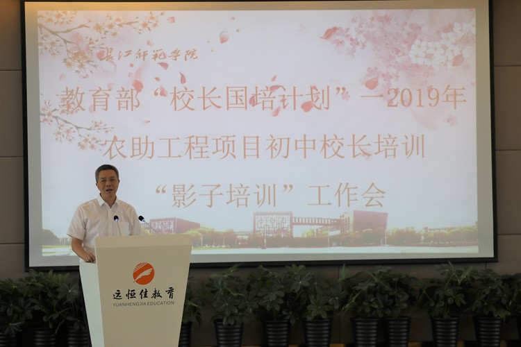 圖為教育部中小學校長國家級培訓“農助工程項目項目”首席專家、重慶市教育科學學院院長蔡其勇教授講話