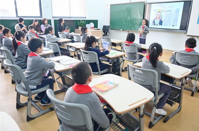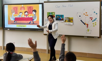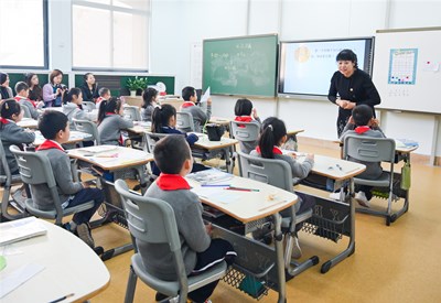張老師的課堂以探索學科世界創(chuàng)設情景,在音樂世界中用學生喜歡的歌手導入,讓學生在唱跳中掌握重點句型;在科學世界中去探索,提問和創(chuàng)新;在體育世界中發(fā)揮特長,能讀能寫;在文化世界中了解世界各國特色課程,讓學生們大開眼界。