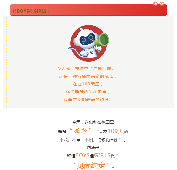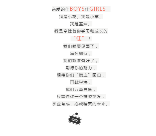 當(dāng)前位置:美好學(xué)生> “孤念”109天 佳BOYS佳GIRLS 歡迎歸來(lái)!