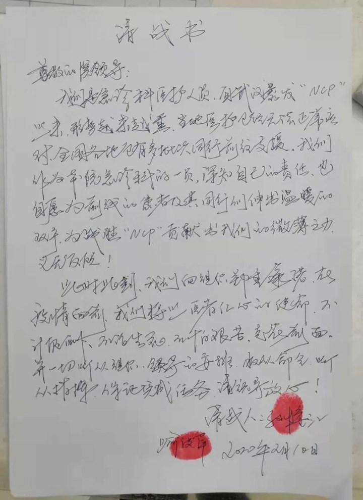 2020年2月10日,他,是長(zhǎng)壽區(qū)中醫(yī)院急診科第一個(gè)遞交請(qǐng)戰(zhàn)書(shū)的醫(yī)生……