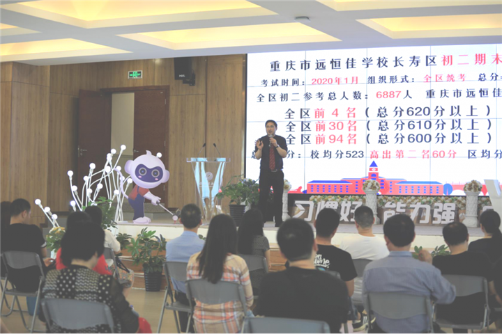 中學(xué)部負(fù)責(zé)人孫瓊老師向各位家長匯報了孩子們在學(xué)校整體的表現(xiàn)情況。在學(xué)業(yè)上,初中部各年級在長壽區(qū)的各項學(xué)業(yè)測試中取得優(yōu)異成績,高中部在重慶市六十余校聯(lián)考中名列前茅;在德育管理上,堅持以生為本,為孩子們樹立正確的人生觀、價值觀、世界觀打下基礎(chǔ)。
